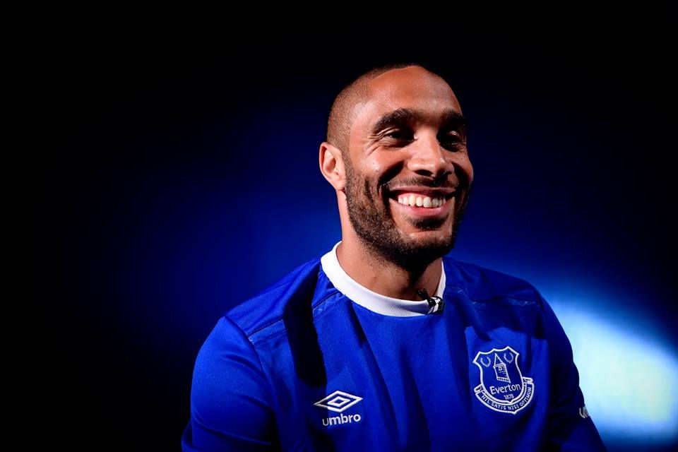 Ashley Williams pose avec le maillot des Toffes (Crédit : Everton FC)